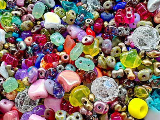 $11.6265 g (2,29 oz) Unique Mix of Czech Glass Beads for Jewelry Making, Beads & Bead assortments. Pressed Beads, Matubo, Rocailles et al. Mixed Shapes and Size, Composition Sparkling Feria