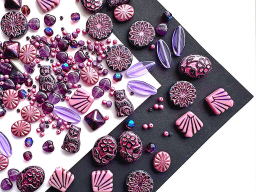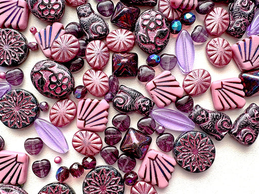 $11.6265 g (2,29 oz) Unique Mix of Czech Glass Beads for Jewelry Making, Beads & Bead assortments. Pressed Beads, Matubo, Rocailles et al. Mixed Shapes and Size, Composition Lavender Sparkle