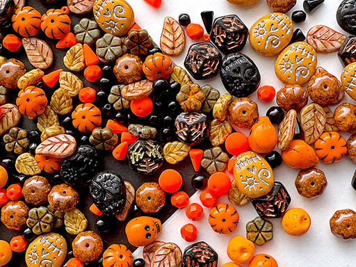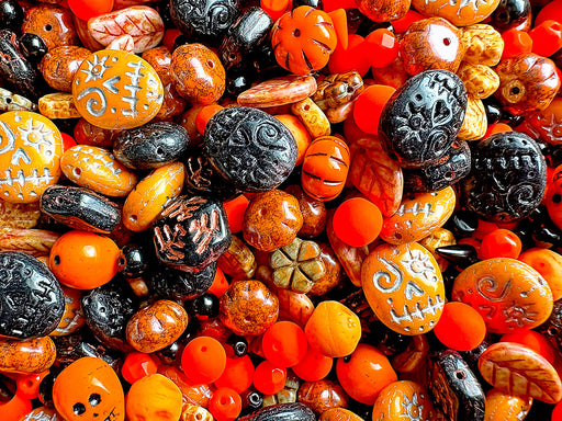 $10.5765 g Unique Mix of Czech Glass Beads for Jewelry Making, Beads & Bead assortments. Mixed Shapes and Size , Orange-Black Halloween, Czech Glass