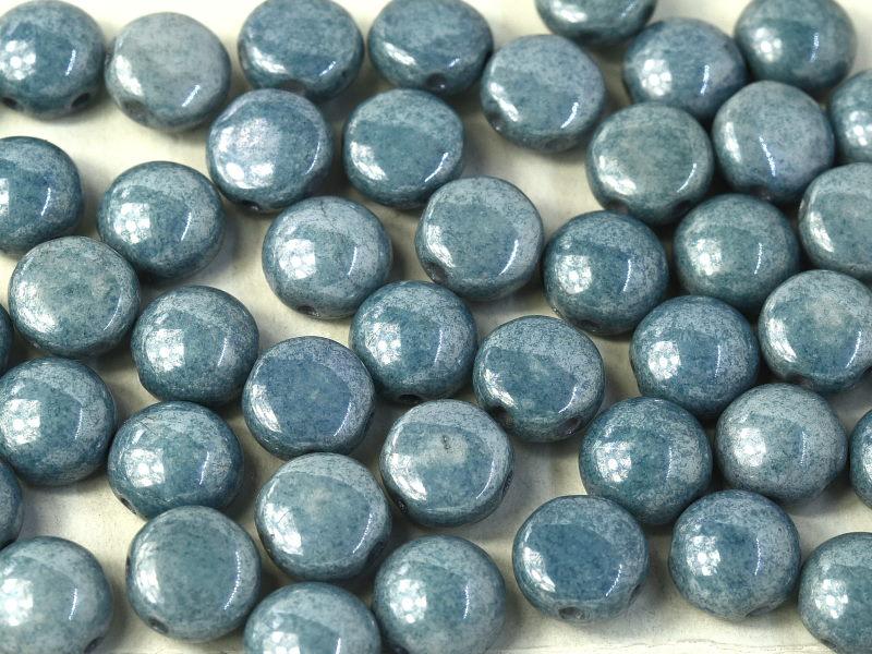 100 pcs Candy Beads 8 mm, 2 Holes, Chalk White Baby Blue Luster, Czech Glass