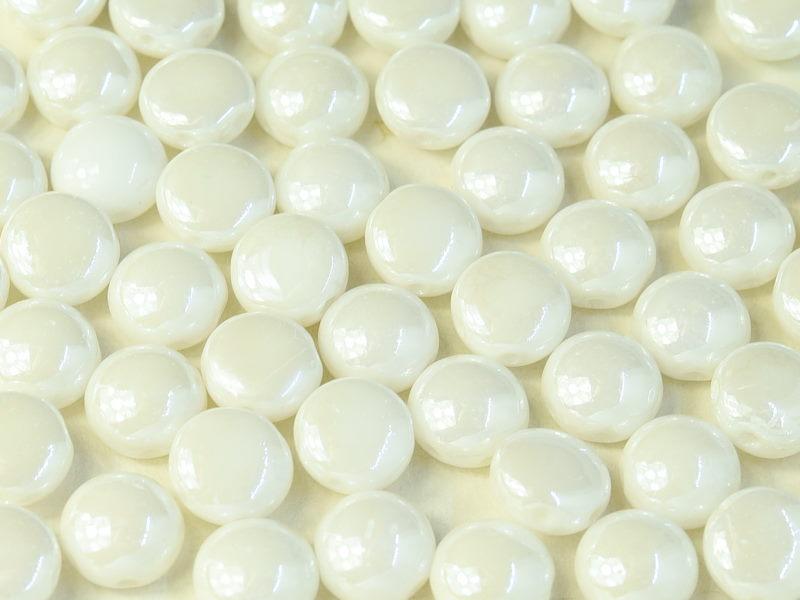 100 pcs Candy Beads 8 mm, 2 Holes, Chalk White Shimmer, Czech Glass