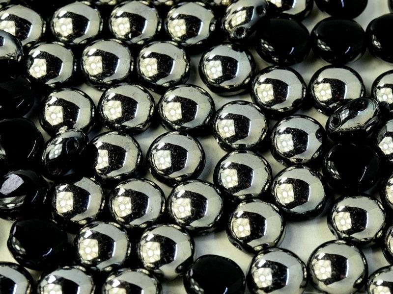 100 pcs Candy Beads 8 mm, 2 Holes, Jet Chrome, Czech Glass