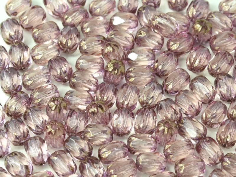 120 pcs Fire Polished Beads Shapes 6x4 mm, Rosaline Bronze, Czech Glass