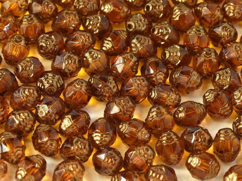 60 pcs Fire Polished Beads Shapes 8x6 mm, Topaz Bronze, Czech Glass