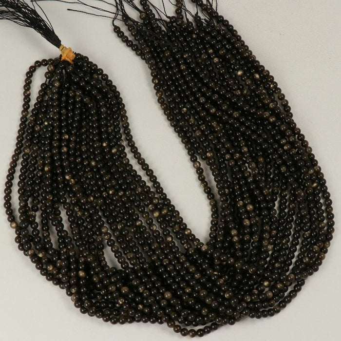 1 Strand 38/40cm Gemstone Beads 4 mm, Obsidiana Golden Round Smooth