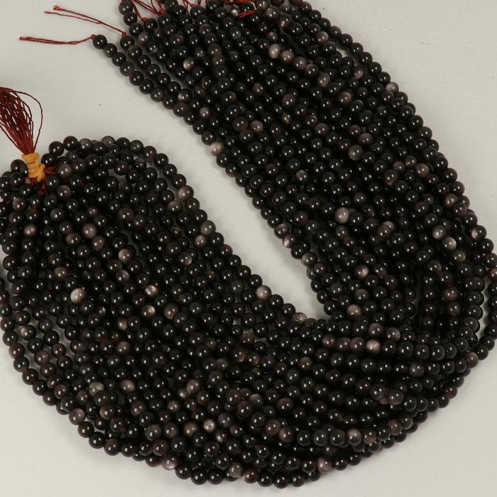 1 Strand 38/40cm Gemstone Beads 6 mm, Obsidiana Silver Round Smooth