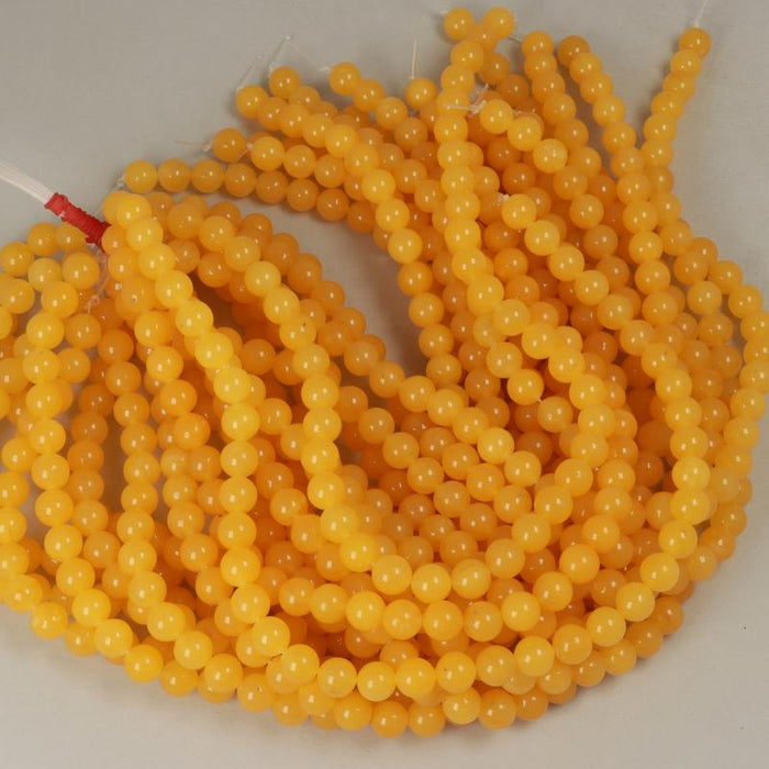1 Strand 38/40cm Gemstone Beads 10 mm, Dyed Jade Yellow Round Smooth