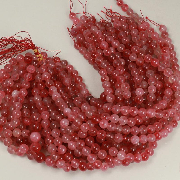 1 Strand 38/40cm Gemstone Beads 10 mm, Dyed Jade Red Strawberry Round Smooth