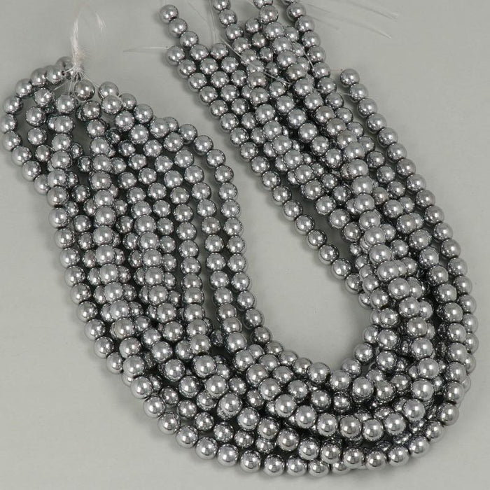 1 Strand 38/40cm Gemstone Beads 8 mm, Hematite Plated Rhodium Round Smooth