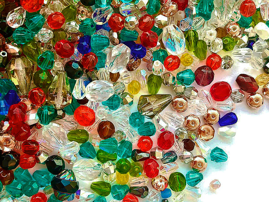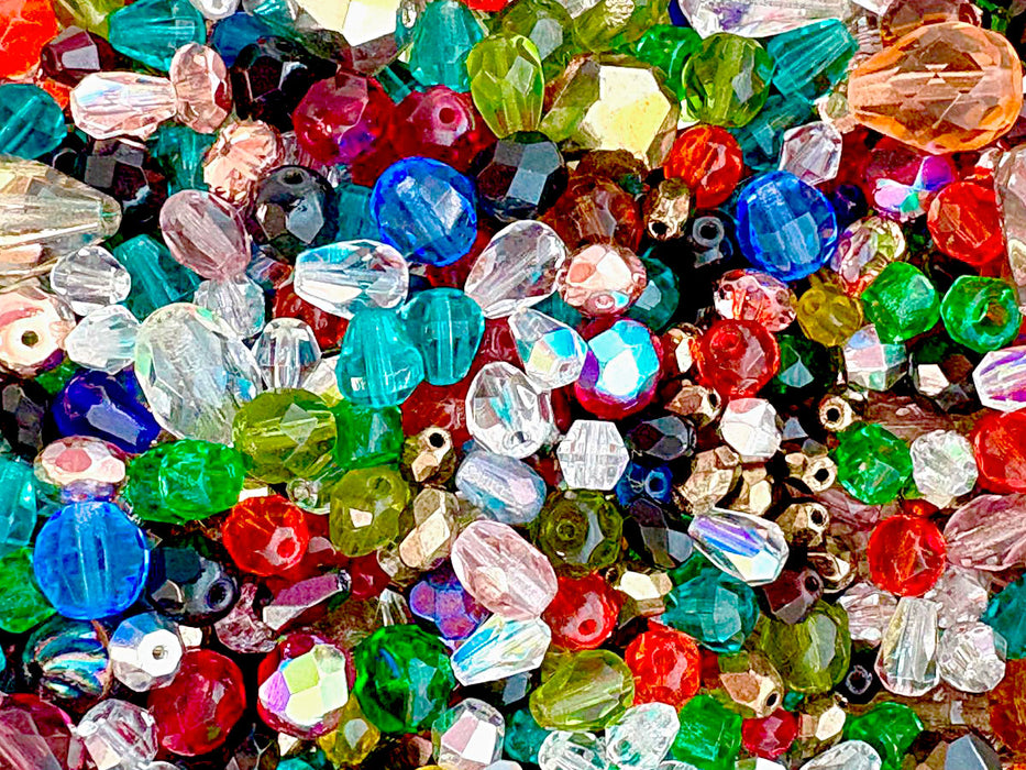65 g Mix of Faceted Fire Polished Beads , Different Shapes and Colors, Czech Glass