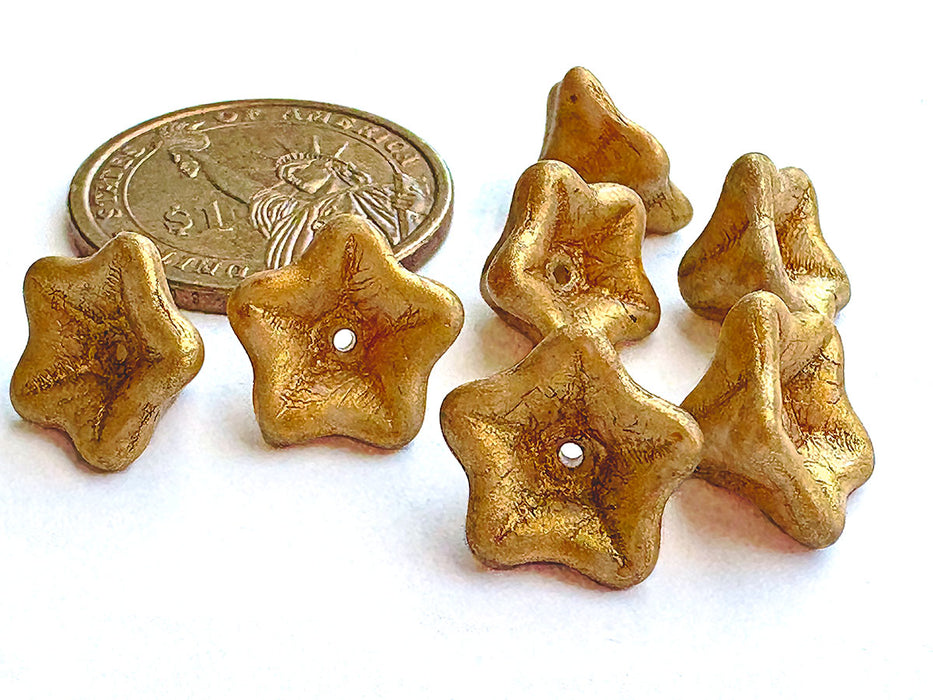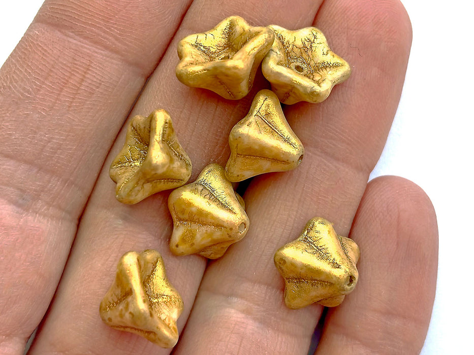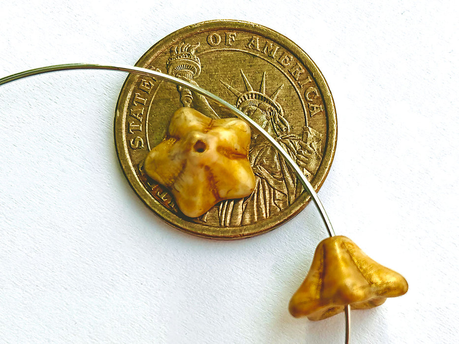 7 pcs Petunia Flower Beads 8x13 mm, Alabaster Herbs Spices Curry, Czech Glass